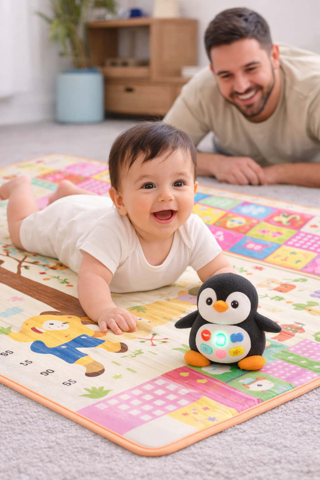 “Es increíble ver cómo mi bebé va ganando fuerza en el cuello y la espalda durante el tummy time. Como padre, es un alivio saber que está desarrollando su motricidad de forma segura mientras juega.”