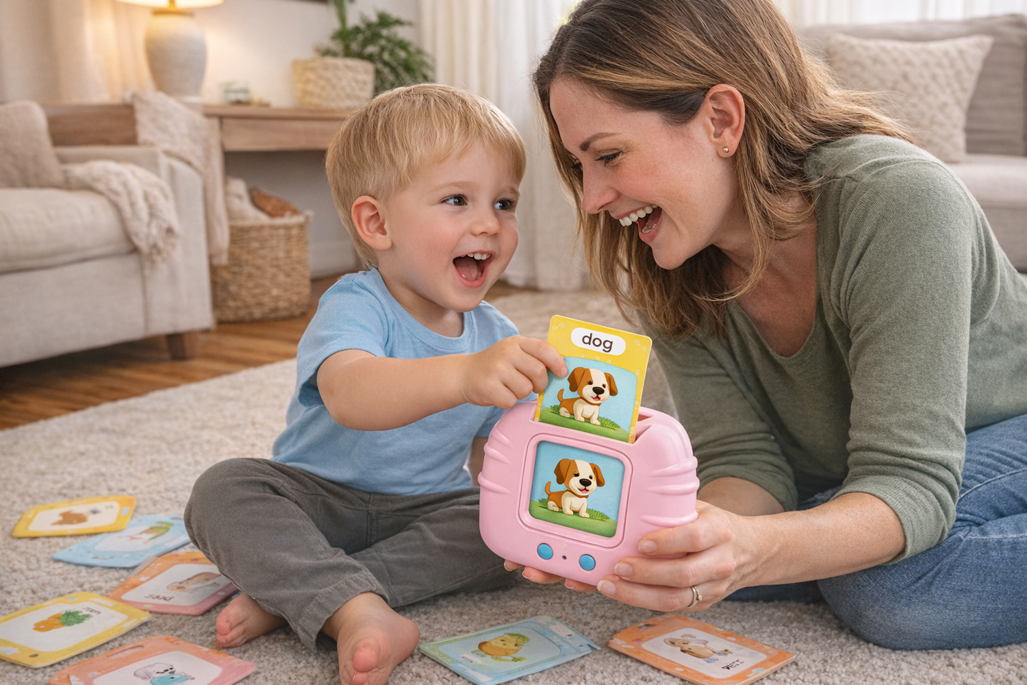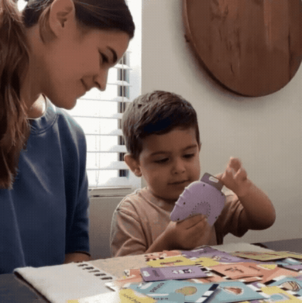 Nuestro hijo tiene 2 años y todavía hablaba poco. Un día señaló una tarjeta y dijo “dog” con toda claridad. No era repetición sin sentido, sabía lo que estaba diciendo. — Laura F.