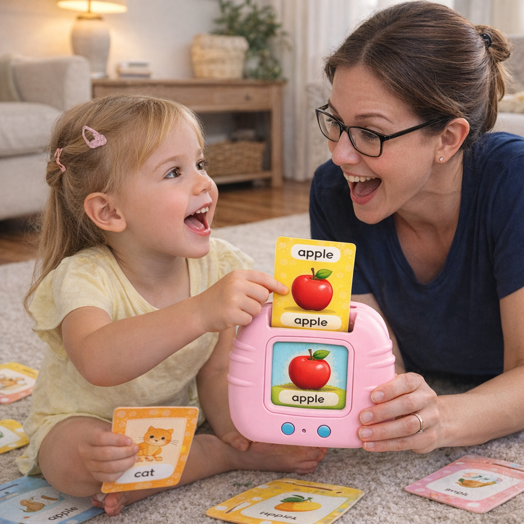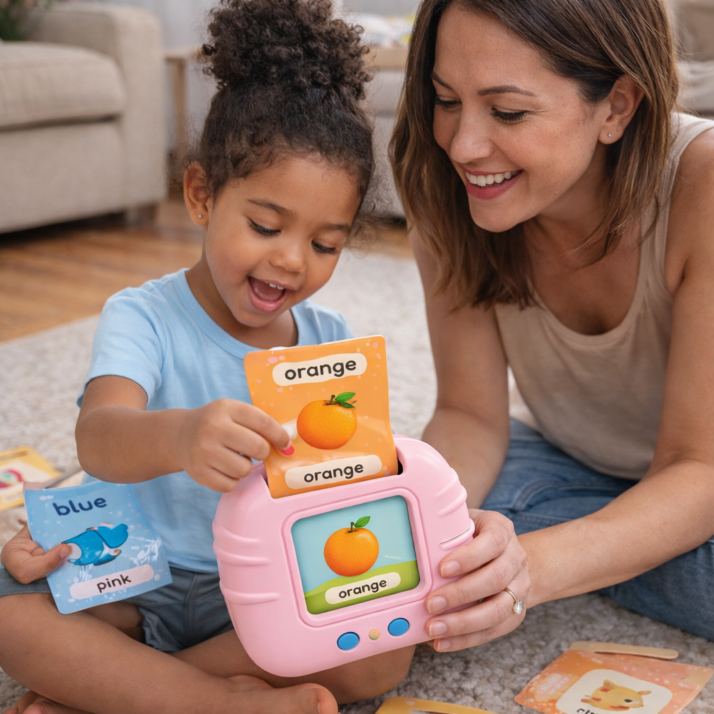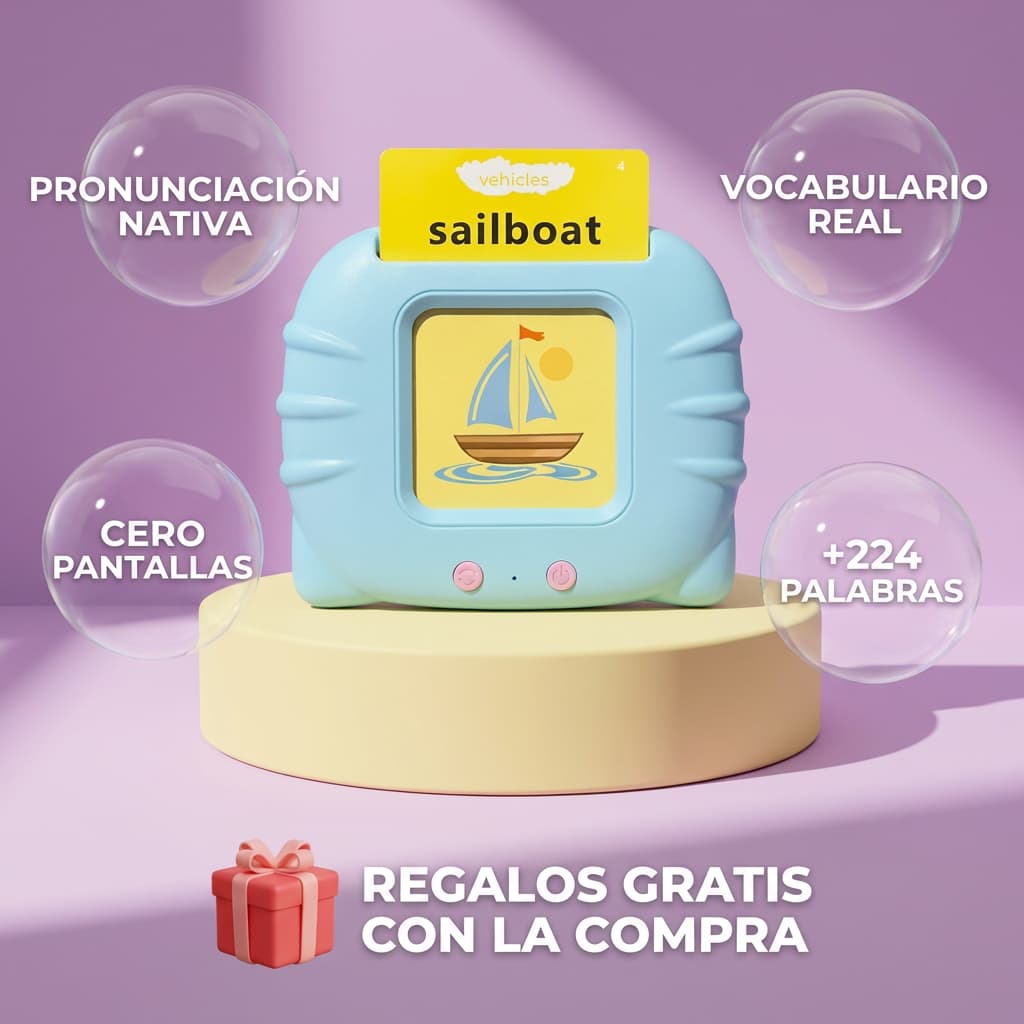 No. El juguete no tiene pantalla digital, solo imágenes ilustradas en las tarjetas y audio. Esto evita la fatiga visual y permite que los niños aprendan sin estar expuestos a pantallas, algo muy valorado por padres y educadores.