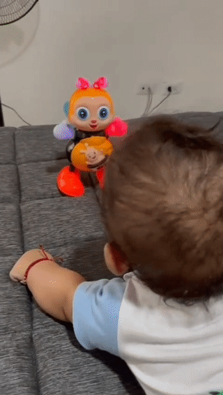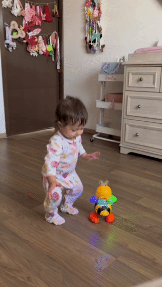 Cada movimiento que el bebé hace al intentar seguir a la abejita ayuda a fortalecer músculos, mejorar la coordinación y estimular la atención visual.
